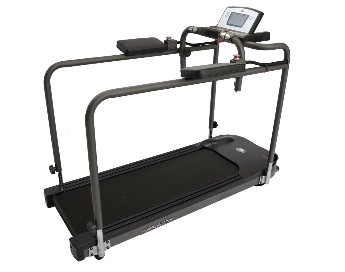 Вторым преимуществом медицинских беговых дорожек является наличие поручней. На дорожке American Motion Fitness 8612R есть боковые и фронтальные поручни. Передние поручни регулируются по высоте, боковые тоже регулируются, имеют 3 уровня – 78, 87, 97 см от пола.