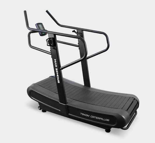 Беговая дорожка BRONZE GYM T940M CATERPILLAR относится к новому, набирающему популярность типу беговых дорожек с гусеничным беговым полотном и с вогнутой формой поверхности. Такой тип отличается от классического по нескольким параметрам. Пожалуй, наиболее существенное отличие состоит в том, что пользователь может передвигаться на любых доступных для него скоростях без всяких ограничений, самостоятельно регулируя скорость самого полотна. Если в классических беговых дорожках полотно приводится в действие электромотором и тренирующийся следует за установленной на консоли скоростью, в случае T940M CATERPILLAR сам пользователь "ногами" определяет скорость движения полотна, по сути самостоятельно выступая в роли двигателя дорожки. Отсюда вытекает ряд практических преимуществ. Во-первых, за счет необходимости ногами расталкивать полотно, существенно увеличивается общая нагрузка на организм (как следствие, количество потраченных калорий).