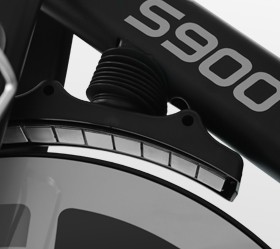 BRONZE GYM S900 PRO - профессиональный спин-байк для тренировок в клубах со средней проходимостью (medium commercial). Все узлы и детали проверены многолетним опытом эксплуатации в различных условиях по всему миру. Безусловно, надежность - одна из важнейших характеристик любого оборудования, но отличается BRONZE GYM S900 PRO не только этим. В первую очередь, стоит выделить его великолепную биомеханику. В основе находится ременной привод с преднатяжителем и магнитной системой нагружения. Последняя является самой прогрессивной разработкой в биомеханике спин-байков и обеспечивает самую высокую степень эффективности и комфорта. Целых 8 магнитов, выполняющих функцию колодок, действуют по бесконтактному принципу. Это позволяет педалировать на любых скоростях с любым уровнем нагрузки абсолютно равномерно. Здесь в принципе отсутствуют провалы нагрузки во время кручения. Усиливает великолепный биомеханический эффект маховик весом 22 кг., выполненный по уникальной технологии с использованием алюминиевого обода. Его отличие - абсолютно ровный диаметр и равномерное распределение веса (плотности) по своей форме. Это еще один плюс в копилку ровного плавного хода и самого высокого коэффициента инерции. BRONZE GYM S900 PRO отлично проходит так называемый "Тест на 6 часов" (проверка равномерности распределения нагрузки при педалировании, проводится в положении стоя; как правило, большинство спин-байков "проваливаются" (скорость увеличивается, нагрузка падает) при движении шатуна из верхнего положения в нижнее). Важнейшую роль в биомеханике играет рама. Продуманная конструкция из легированного стального профиля с общим весом изделия 52 кг. относится к числу лучших в отрасли. Она надежна, устойчива, не подвержена деформации и отлично защищена порошковой краской от коррозии. Подседельный и рулевой штырь, выполненные из высокопрочного стального профиля с надежным хромированным покрытием, регулируются во всех возможных положениях и подходят для пользователей практически любого роста и веса. На них не остается царапин при смене положения сидения или руля, они долговечны, недеформируемы и абсолютно устойчивы к воздействию пота. Само сидение большое и комфортное, наполнено гелиевыми наполнителями и особенно подойдет тем, для кого спортивное сидение является излишне жестким. К числу других преимуществ BRONZE GYM S900 PRO относятся быстро настраиваемые компенсаторы неровностей пола, износостойкие полиуретановые транспортировочные ролики и регулируемый держатель для бутылки. Многопозиционный руль с подлокотниками, полностью закрытый от влаги прорезиненной полиуретановой защитой, дает возможность принять спортивное "шоссейное" положение. Помимо всего прочего, здесь стоят педали, выполненные по технологии "Toe clip" (система рамок и ремешков на педали для крепления ноги). Максимальный вес пользователя BRONZE GYM S900 PRO - 159 кг. Обладает всеми необходимыми сертификатами, в т.ч. TUV GS и соответствует стандартам EN957-10:2005, EN ISO 20957-1:2013 (Class C). Характеристики: