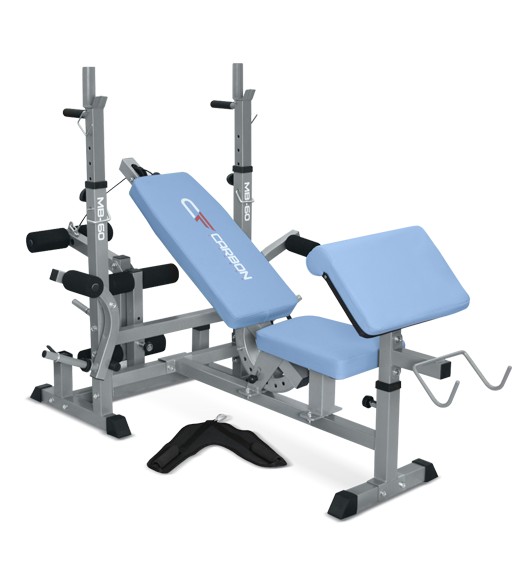 Многофункциональная домашняя силовая скамья с максимально возможным функционалом. В число упражнений входят жим штанги, разведение-сведение гантелей лежа/сидя, разгибание/сгибание ног, бицепс, пресс, брусья, "баттерфляй". Угол наклона спинки регулируется в диапазоне от 0 до 90 градусов. Парта на бицепс имеет 4 положения регулировки по высоте, жимовые стойки - 5 положений. В качестве нагрузки используются диски диаметром 26 мм. Парта на бицепс и блок на сгибание/разгибание ног съемные, их можно закрепить на задней части тренажера. Максимальная совокупная нагрузка - 160 кг. Характеристики: