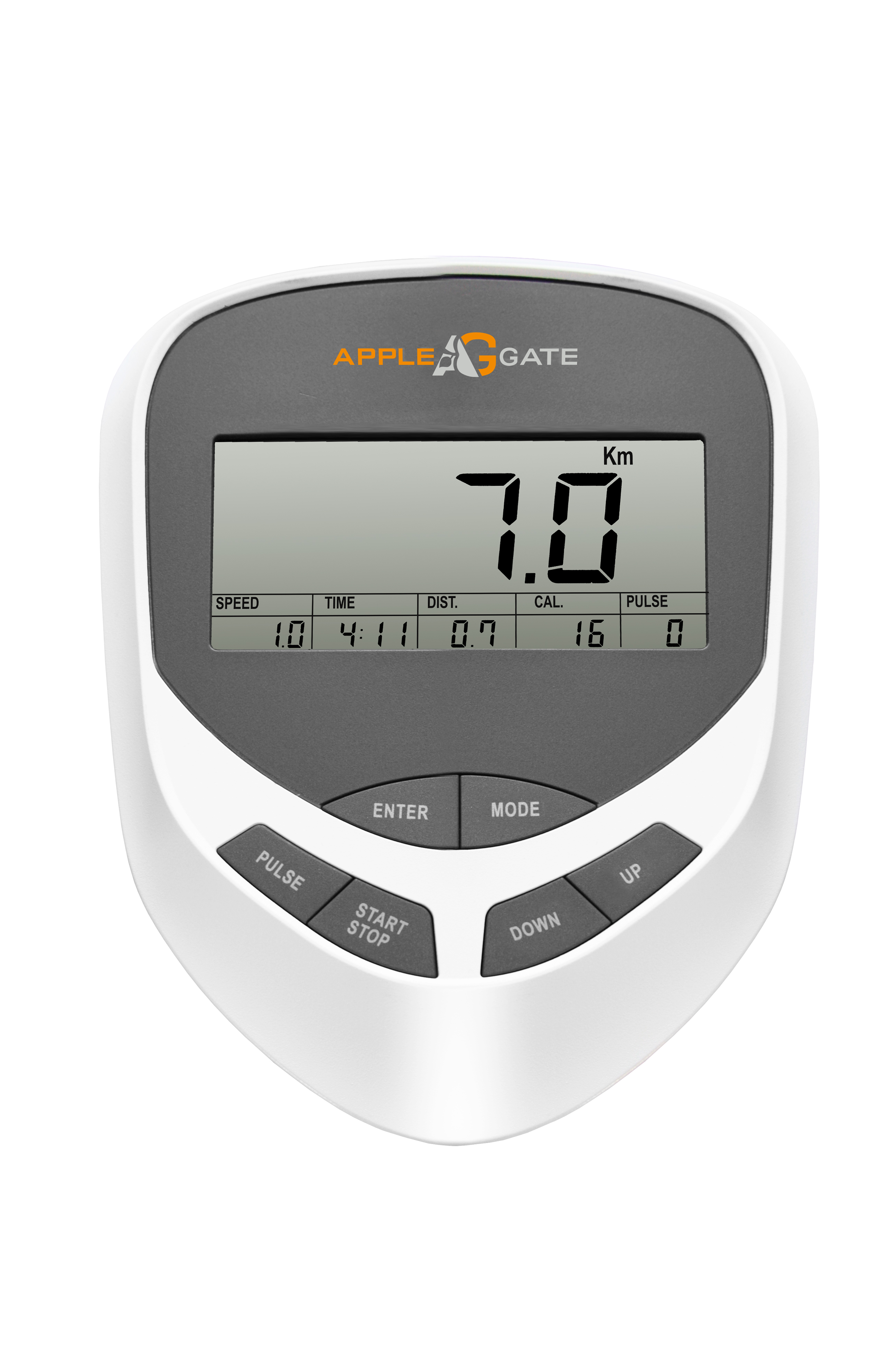 Тренировочный компьютер представлен черно-белым LCD-дисплеем диагональю 14,5 см. На экран выводятся все основные параметры тренировки - время, дистанция, скорость, калории, обороты в мин., пульс, а также температура внешней среды. Регулировка нагрузки регулируется механическим путем в 8 положениях. По завершении тренировки функция Recovery оценит способность сердечно-сосудистой системы к восстановлению.