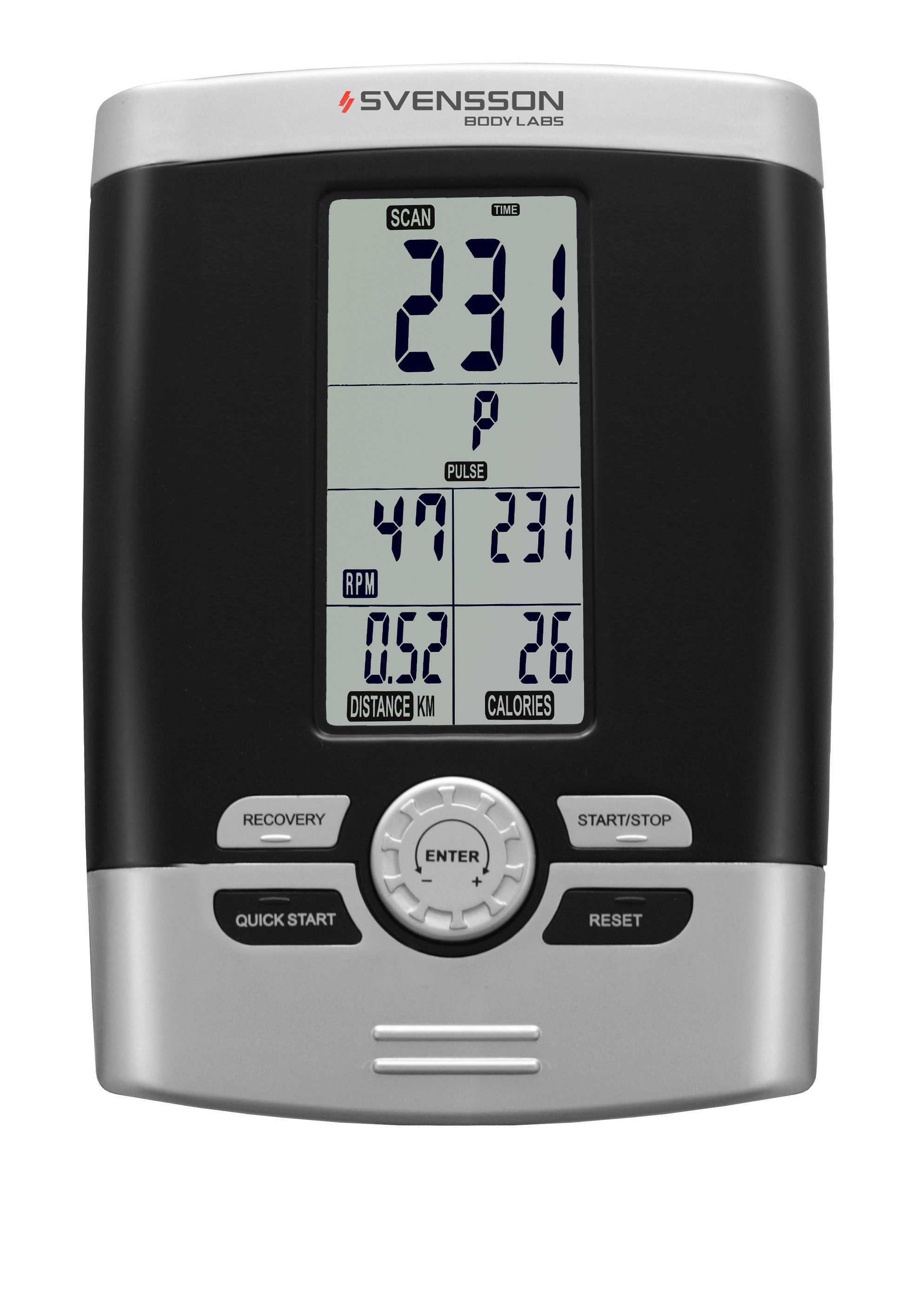 Тренировочный компьютер представлен черно-белым LCD-дисплеем диагональю 14,5 см. На экран выводятся все основные параметры тренировки - время, дистанция, скорость, калории, обороты в минуту и пульс. Регулировка нагрузки регулируется механическим путем в 8 положениях. По завершении тренировки функция Recovery оценит способность сердечно-сосудистой системы к восстановлению.