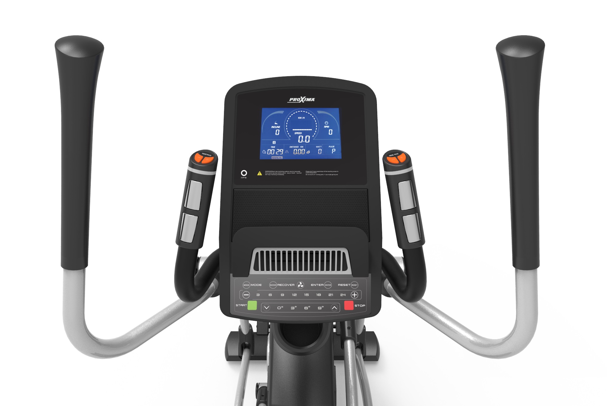 PROXIMA Futuria оснащен функцией автоматического изменения наклона рампы до 10 уровней. Данная функция наклона рампы позволяет адаптировать тренажер под разные цели, создать нагрузку на разные группы мышц, использовать разные типы тренировок.