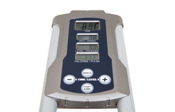 Spirit XG-200 имеет очень простую в использовании консоль, которая очень напоминает компьютер модели CG800. Дисплей тренажера дает вам необходимую информацию о прогрессе во время тренировки, так что Вы всегда будете контролировать время занятия, расстояние, частоту сердечных сокращений и количество оборотов в минуту. астота Частота сердечных сокращений измеряется с помощью датчиков, которые встроены в неподвижные ручки. Кроме того, для быстрой остановки, предусмотрен удобно расположенный тормозящий механизм, учитывая высокую инерцию маховика, система торможения позволяет легко и быстро сделать остановку тренажера.