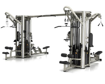 8-ми позиционная мультистанция. - Блочный кроссовер - Гребля сидя: 2 рабочих места. Вес каждого стека – 91 кг. - Верхняя тяга: 2 рабочих места. Вес каждого стека – 91 кг. - Трицепс стоя: 2 рабочих места. Вес каждого стека – 91 кг. - 2 регулируемые по высоте тяги (с возможностью выполнения махов ногами). Вес каждого стека – 91 кг. - 18 уровней регулировки высоты тяг - Турник (прямой и параллельный хват)
