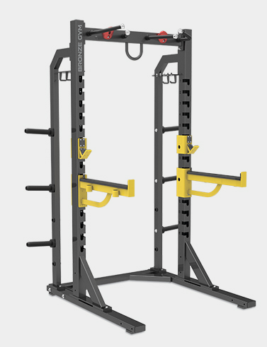 Силовая полурама BR-1030 предназначена для эффективной проработки мышц всего тела. Тренажер входит в новую линейку оборудования BRONZE GYM, которое разработано, чтобы обеспечить максимальную производительность тренировок. Конструкция рамы включает в себя страховочные ограничители и съемные крюки для грифа. Также, для занятий без штанги предусмотрены турники с многопозиционными хватами и зацепы для подтягиваний. Крепления и крюки для эспандеров обеспечивают постепенное увеличение нагрузки в жиме лежа, приседе и других упражнениях. На задних стойках рамы расположены 6 держателей для стандартных олимпийских дисков. Тренажер отлично подходит для общих силовых тренировок и улучшения физической формы в целом, а также для повышения спортивных результатов.