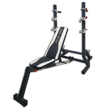 Универсальная скамейка предназначена для тренировок со штангой в условиях комнаты (квартиры и т.п.). Спинка регулируется в диапозоне от от -30° до 90°. Сидение регулируется в двух положениях. Стойки оснащены верхними основными ловушками с замками против сваливания грифа и дополнительными страховочными ловушками. На стойках установлены ручки для отжимания на брусьях. Допустимо применять штангу тренировочную длиной 1800 мм. Основа спинки и сидения - многослойная фанера (15 мм), в качестве наполнителя используется поролон, устойчивый к усадке, покрытый высококачественной искусственной кожей различных цветов. Поставляется в разобранном виде.