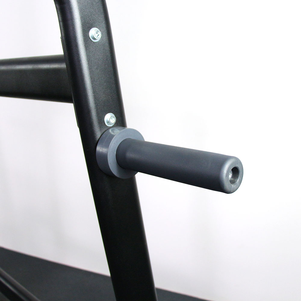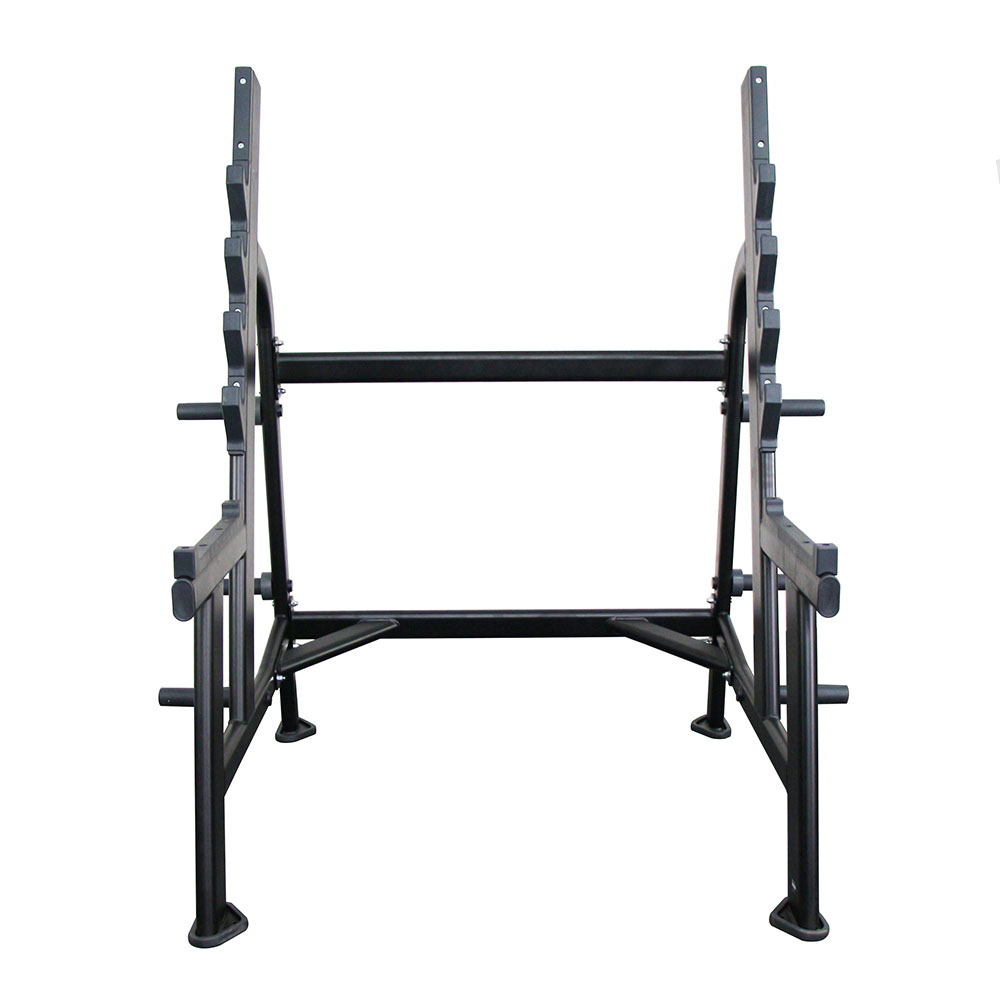 Конструкция стойки позволяет выполнять как классический присед со штангой, так и жим от груди под углом 45 градусов.