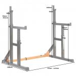 Стойки под штангу регулируются по ширине на расстоянии от 77 до 117 см друг от друга. 10 уровней с шагом 5 см.