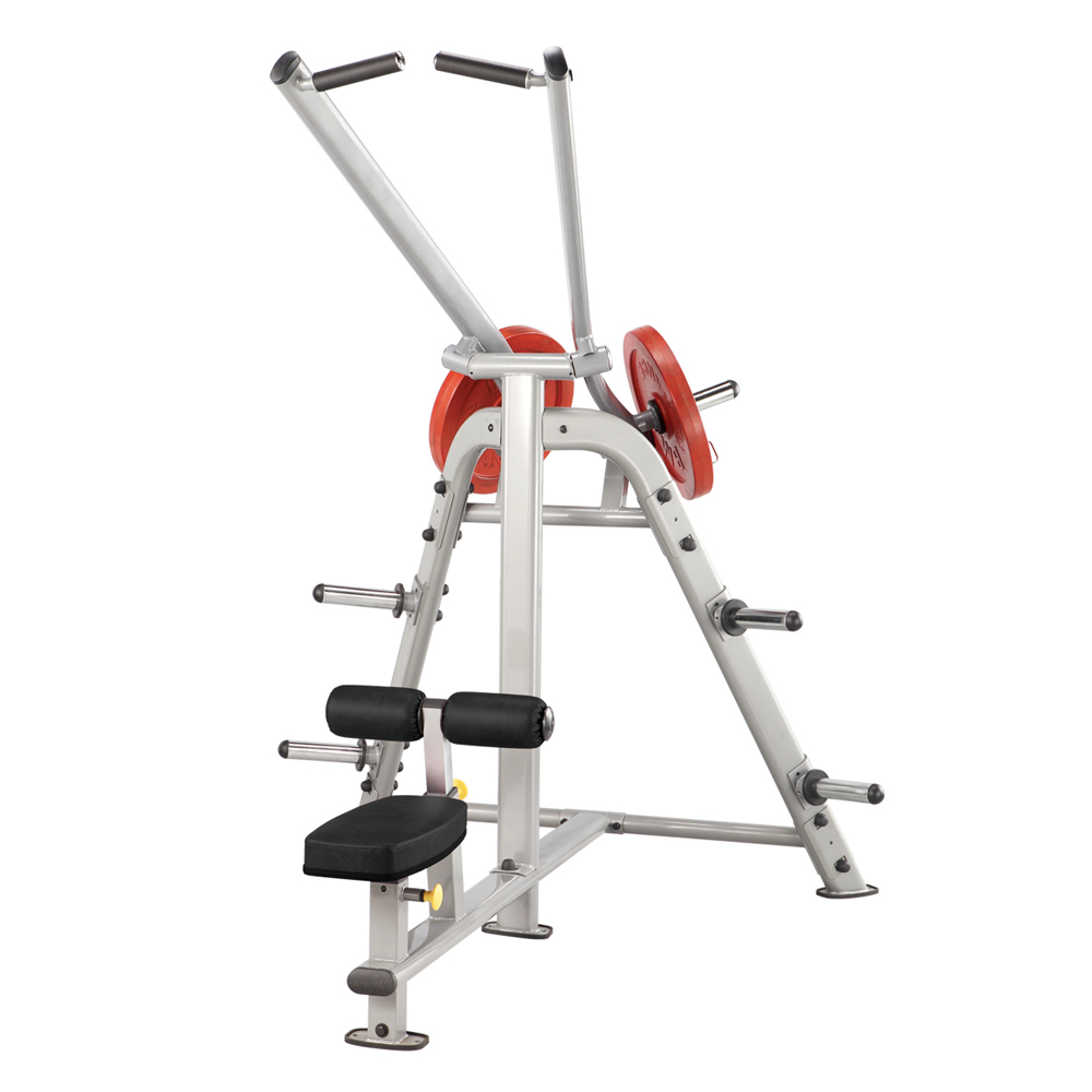 Профессиональный тренажер, нагружаемый дисками, выполнен в современном дизайне.