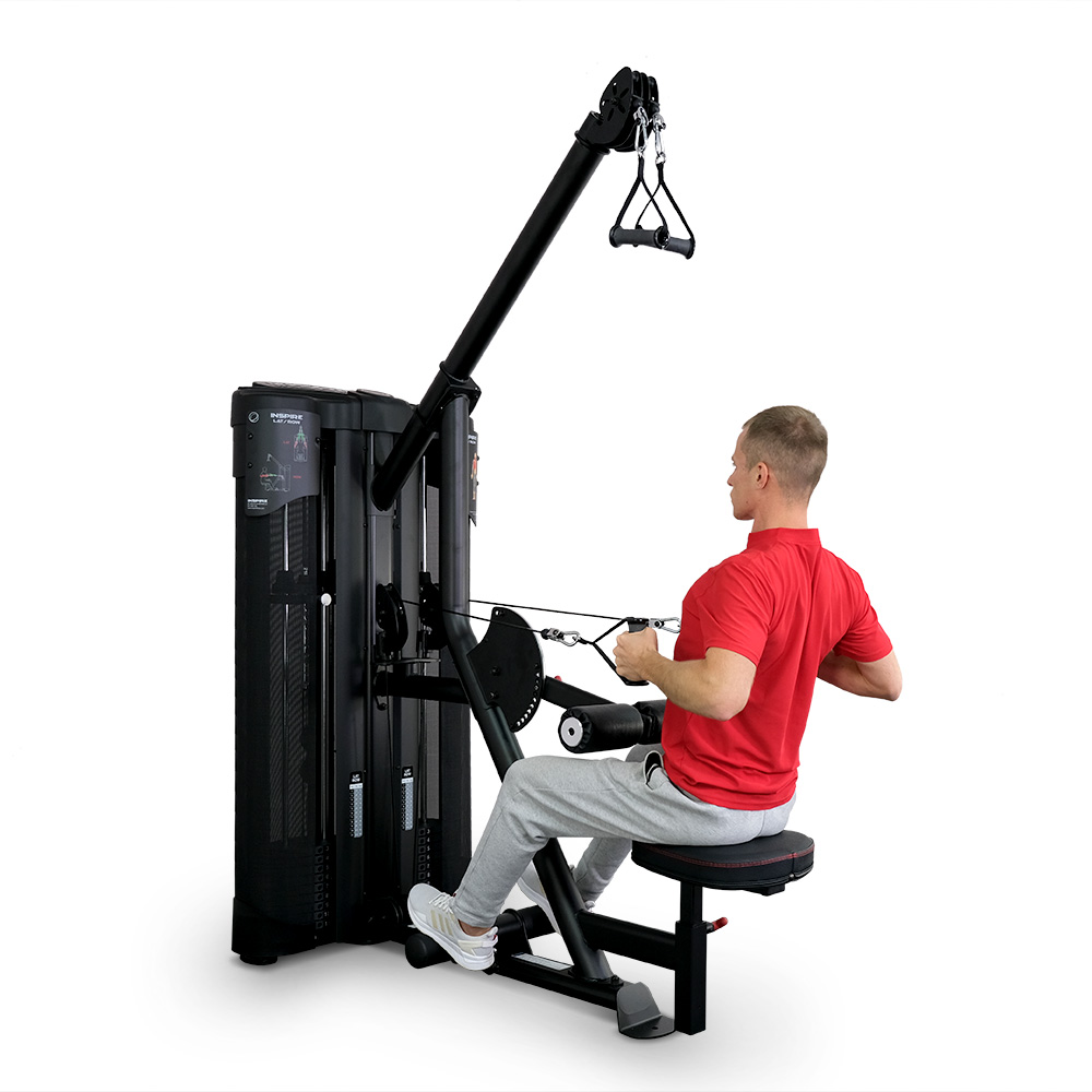 Тренажер "Тяга верхнего/нижнего блоков" Inspire DMLR1 используется для тренировки широчайших мышц спины. Точная биомеханика направляет нагрузку непосредственно на тренируемую группу мыщц.