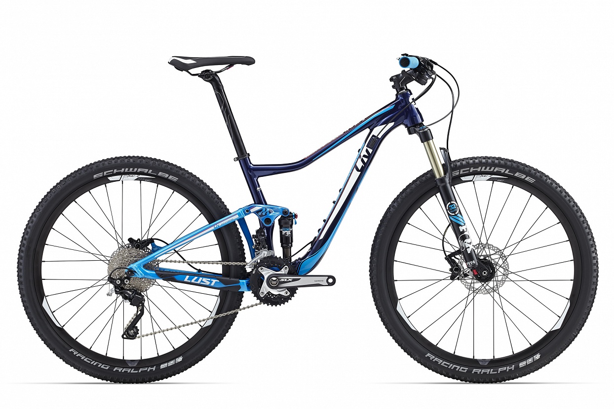 Lust собран на гидроформированной легкой раме из сплава ALUXX SL, которая оптимизирована под геометрию 27.5" и имеет женскую геометрию Liv. Рама сочетает в себе такие предовые технологии Giant, как внутрення прокладка тросов, интрегрированная защита пера и нижней трубы, OverDrive, подвеска Maestro - все это позволяет ощутить полный набор незабываемых ощущений, присущий байкам премиум-класса.