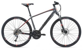 Велосипед Giant Roam 2 Disc (2018), отличный городской велосипед от Giant, алюминиевая рама, амортизационная вилка сгладит все неровности дорожного покрытия и уменьшит нагрузку на позвоночный столб, возможность блокировки, гидравлические дисковые тормоза, надежное навесное оборудование от Shimano, плавное и точное переключение.
