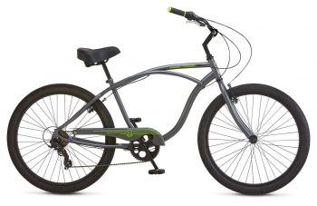 S7 – это классический круизёр от Schwinn. На протяжении многих лет этот круизёр был верным спутником по время неспешных прогулок по городам, паркам и вдоль побережья солнечных пляжей. У Вас есть уникальная возможность почувствовать себя свободным от ежедневной суеты и круговорота дел всего лишь прокатившись немного в седле Schwinn S7, и вы не сможете отказаться от этого удовольствия. Рама Schwinn Relaxed Position имеет особую геометрию для лучшей устойчивости при расслабленной езде. Широкое подпружиненное седло и руль с комфортной геометрией регулируются по высоте и наклону – это помогает подобрать для Вас идеальную посадку. Семи скоростная трансмиссия Shimano Tourney управляется переключателями типа грипшифт на руле, плавно и чётко меняет передачи и не требует частого обслуживания. Полноразмерные крылья и защита цепи предохраняют одежду от загрязнения и позволяют кататься в любую погоду. Входящая в комплект велосипеда подножка позволяет удобно парковать велосипед во время хранения или непродолжительной стоянки.