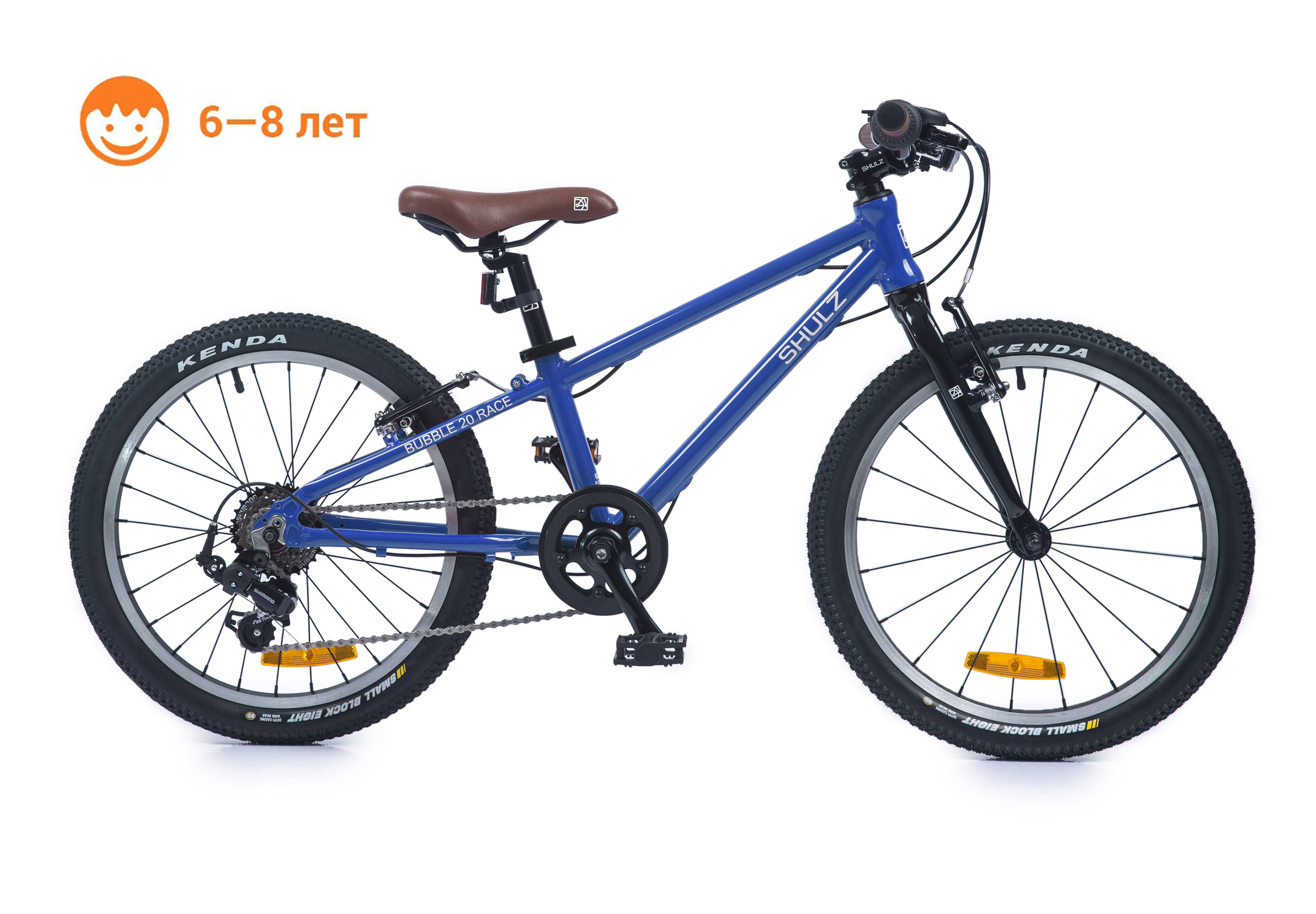 Легкий и качественный 7-скоростной велосипед для тех непосед, хочет научиться или уже умеет гонять на велосипеде. Скорости пригодятся в городе и на лесной тропинке. В этом возрасте ребенок уже может пользоваться переключением скоростей (SHIMANO). Алюминиевая рама и вилка делает велосипед очень легким в управлении. Тормозные ручки адаптированы под детские руки, зубастые покрышкам, обеспечивают отличное сцепление с дорожным покрытием. Велосипед подойдет для ребенка от 5 до 8 лет, ростом от 115 до 135 см. Вес велосипеда 8,2 кг
