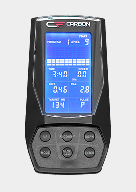 Многофункциональный голубой LCD-дисплей U818 MAGNEX - это небольшой компьютер, который имеет "на борту" массу полезного функционала. На выбор представлены 9 разноплановых встроенных программ, в которых используются различные виды тренировок - холмы, долина, сжигание жира, подъем в гору, выносливость, интервальная тренировка, циклическая тренировка, плато, равнина. Для каждой из встроенных программ можно выставить цели в виде дистанции, времени и количества сжигаемых калорий - при достижении одного из этих показателей тренировка завершится. Есть здесь и ручной режим, где пользователь самостоятельно регулирует уровни нагрузки в процессе занятия. На экран компьютера выводятся различные параметры - непосредственно профиль программ, скорость, время, дистанция, обороты в минуту, калории, пульс, Ватты, одометр, возраст и жироанализатор (Body Fat). По завершении тренировки функция Recovery оценит способность сердечно-сосудистой системы к восстановлению.