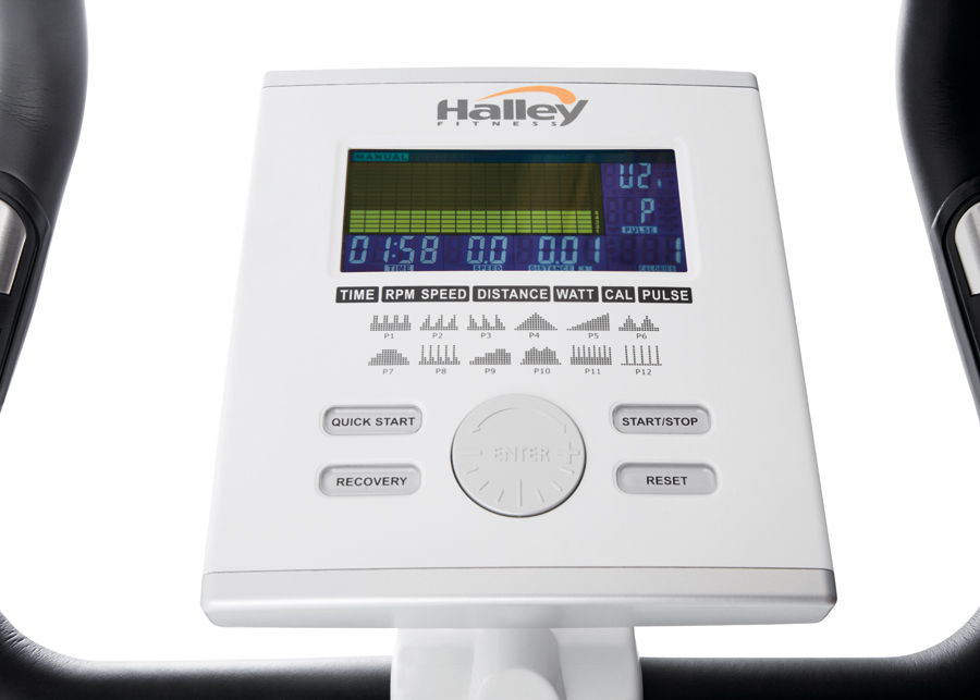 - - Цветной LCD с подсветкой (отображает Дистанцию, Время, Скорость, Калории, Сопротивление в Watt, Пульс, RPM (обороты в мин), Профиль)