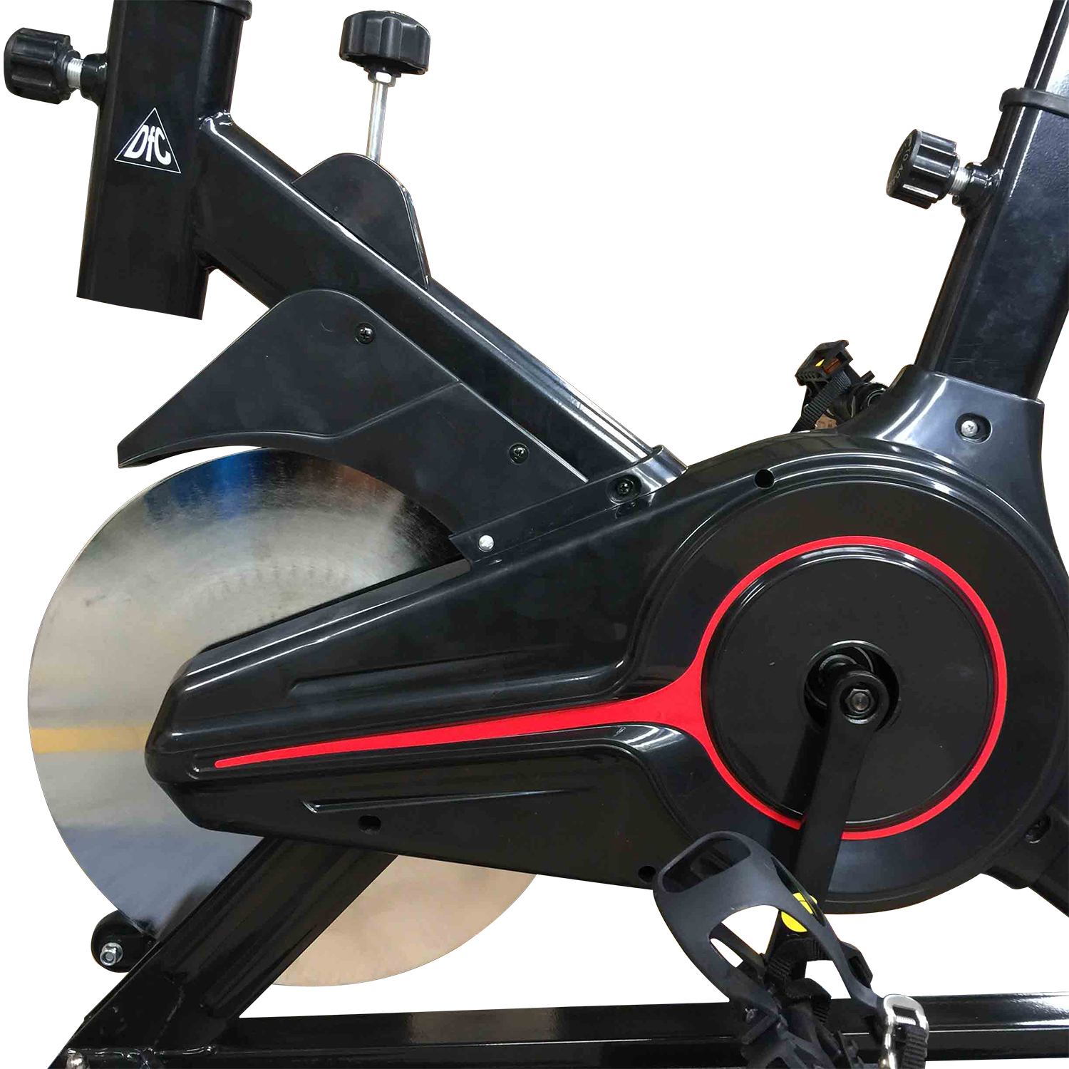 Вертикальный механический спин-байк с ременным типом привода и колодочной системой нагружения. С помощью ручки на раме тренажера возможно бесступенчатое изменение нагрузки. Спортивное сидение регулируется в вертикальной и горизонтальной плоскости, и позволяют подобрать удобную посадку для тренировки. Для контроля пульса во время тренировки на руле есть встроенные датчики.