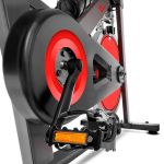 Вертикальный механический спин-байк с ременным типом привода и колодочной системой нагружения. Изменение нагрузки с помощью удобной рукоятки на корпусе тренажера, с экстренным тормозом. Спортивное сидение регулируется в вертикальной и горизонтальной плоскости, и позволяют подобрать удобную посадку для тренировки. В комплекте пластиковая бутылка для воды с держателем на раме тренажера. Для контроля пульса во время тренировки на руле есть встроенные датчики с отображением информации на дисплее компьютера. Питание компьютера от батареек (тип ААА, 2 шт). Для перемещения тренажера в помещении установлены колеса. Фиксация ног в педалях с помощью резиновых ремней с регулировкой. Удобные подлокотники на руле.