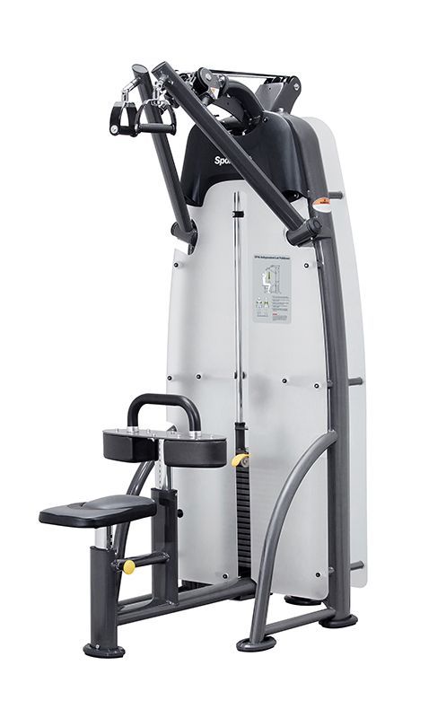 тренажер оснащен ременным приводом (кевларовый ремень) и прорезиненным материалом между каждым блоком, что позволяет снизить шум грузоблочного стека во время тренировки, регулируемым по высоте упорным валиком для фиксирования ног.
