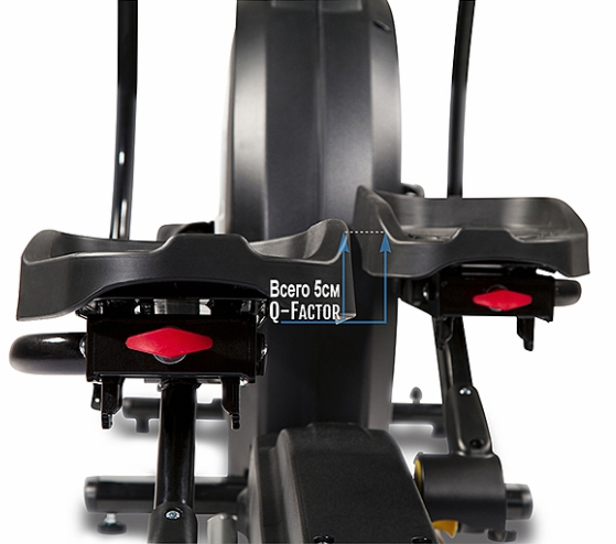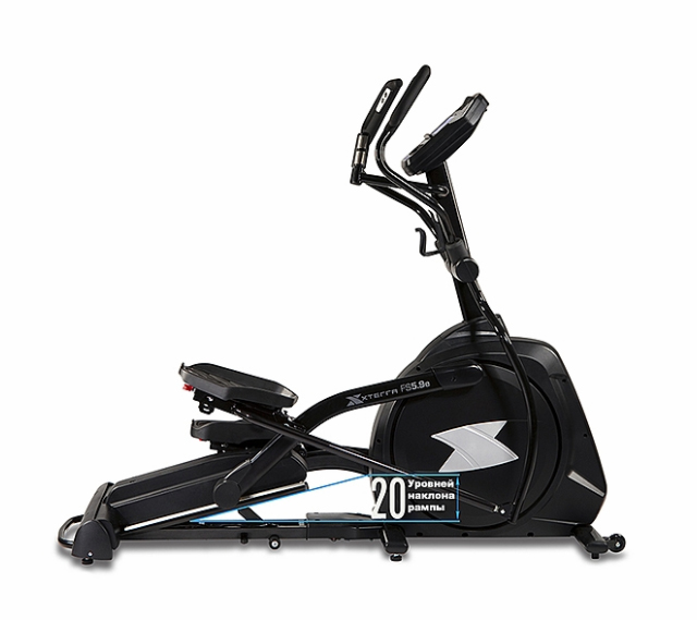 В модели Xterra FS 5.9e для обеспечения непревзойденного удобства, используются широкие комфортные педали с амортизирующим эффектом, благодаря которым, пользователь может ставить ноги в удобное положение. Данный тренажер предлагает максимальную вариативность в выборе комфортного положения на тренажере. Регулируемое положение педалей и наклон рампы сделает акцент в тренировки на те группы мышц, которые в ходе обычного использования могут быть не активно задействованы. Поручни Multi Position — благодаря такой форме пользователь получит больше возможностей выбора комфортного местоположения рук.